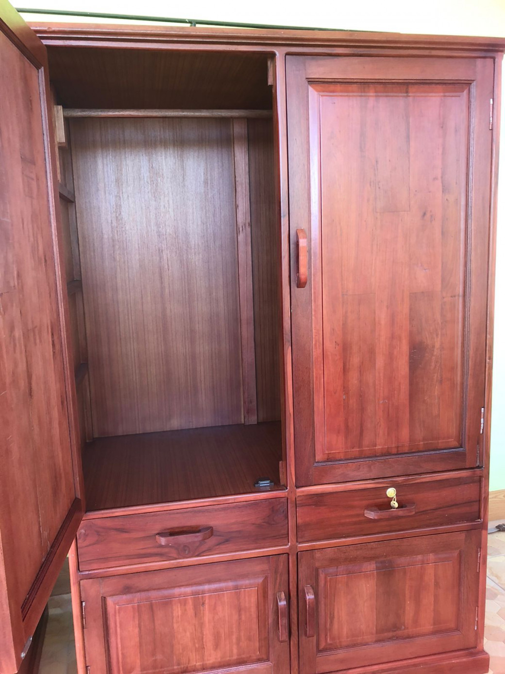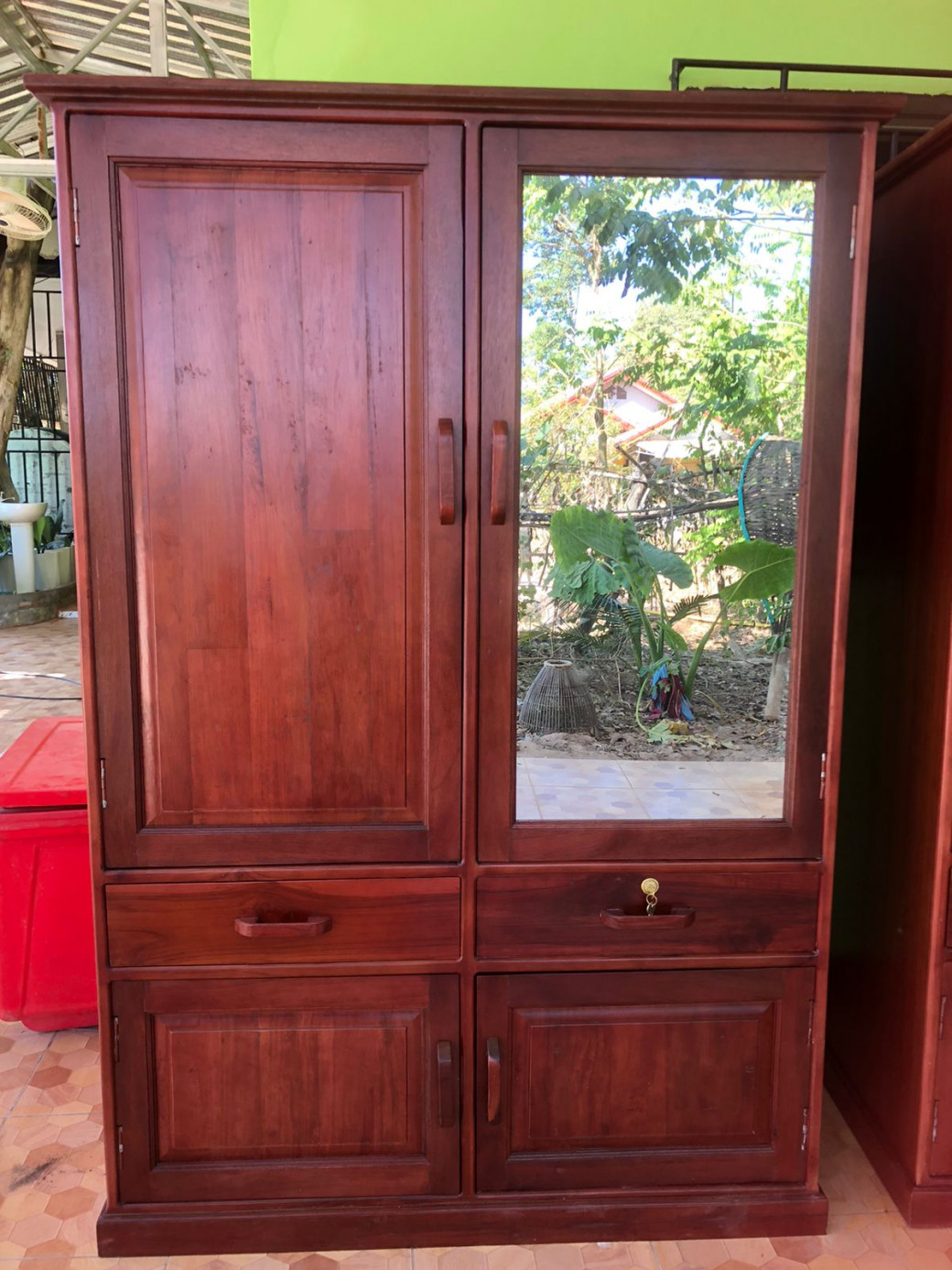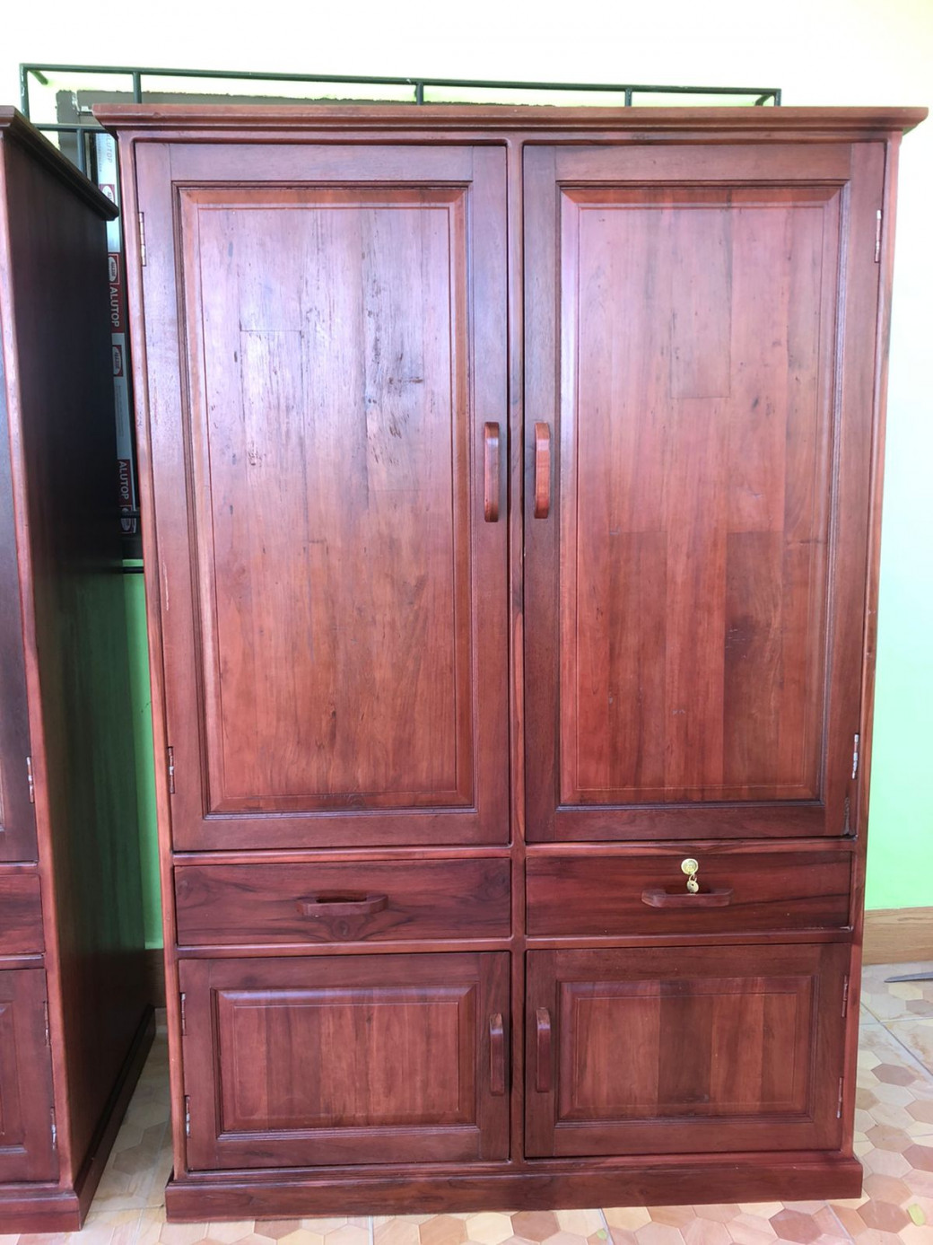 ຂາຍຕູ້ເສື້ອຜ້າໄມ້ສັກ ໜ້າໄມ້ສັກ ຫຼັງໄມ້ອັດ ງາມໆ ຜະວິດເອງຈາກໂຮງງານ ຄຸນນະພາບດີ