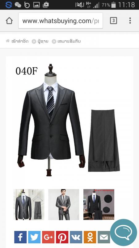 ໃຜຕອ້ງການຊຸດສູດນຸງອອກງານຕ່າງໆສຳລັບຜູ້ຊາຍ.ສາມາດຊັງຊື້ໄດ້.ເຄຶອງແມນສົງມາແຕ່ຕາງປະເທດ(ຈີນ).15ວັນໄດ້ຮັບເຄືອງ.ສວນລາຄ່າແມນຈາຍກອ່ນເຄີງໝຶ່ງໄດ້ຮັບເຄຶອງແລ້ວຈາຍຕຶມ.ລາຄາພຽງແຕ່500000ກີບເທົານັນຫາຊື້ໃສ່ບ່ໄດ້ອິກແລ້ວ.