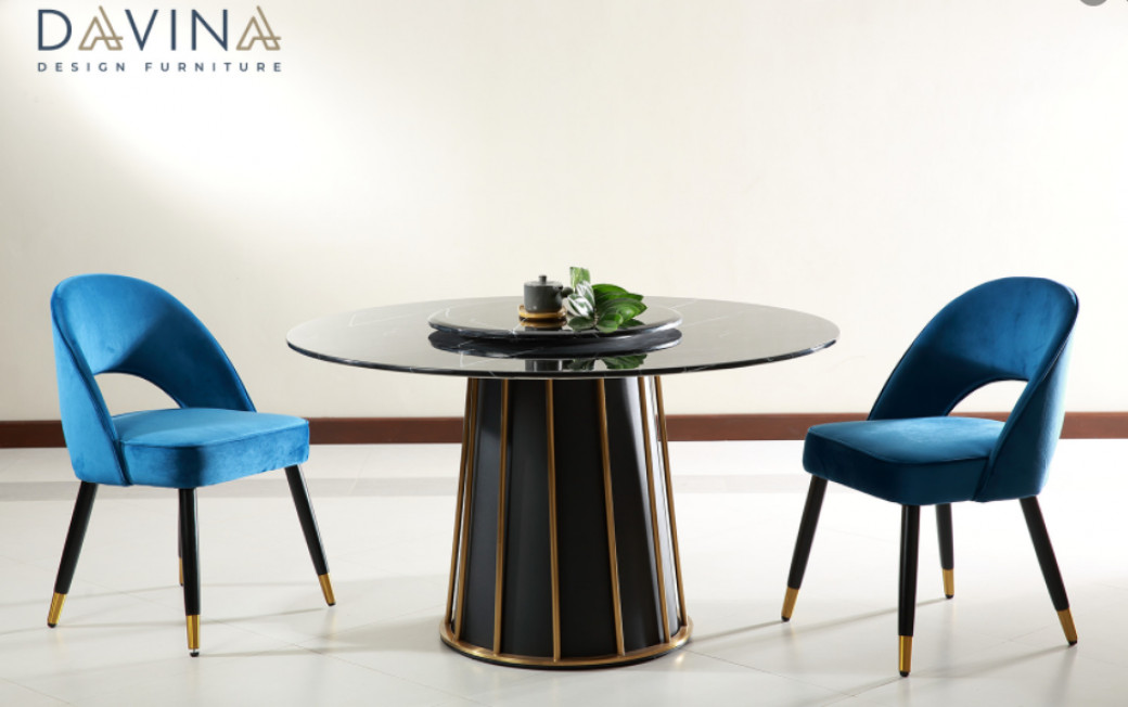 ໂຕະກີນເຂົ້າ ໜ້າມົນ. ມີຖ້ານນ້ອຍເທີງໜ້າໂຕະສໍາລັບວາງຈານ ສາມາດປີ່ນໄດ້. ໜ້າໂຕະເຮັດດ້ວຍຫີນອ່ອນທຽມ. ເຮັດໃຫ້ທໍາຄວາມສະອາດໄດ້ງ່າຍ. ຂາໂຕະມີສອງແບບໃຫ້ເລືອກ. ມີ 2 ຂະໜາດ: 130 ຂມ ແລະ 150 ຊມ.