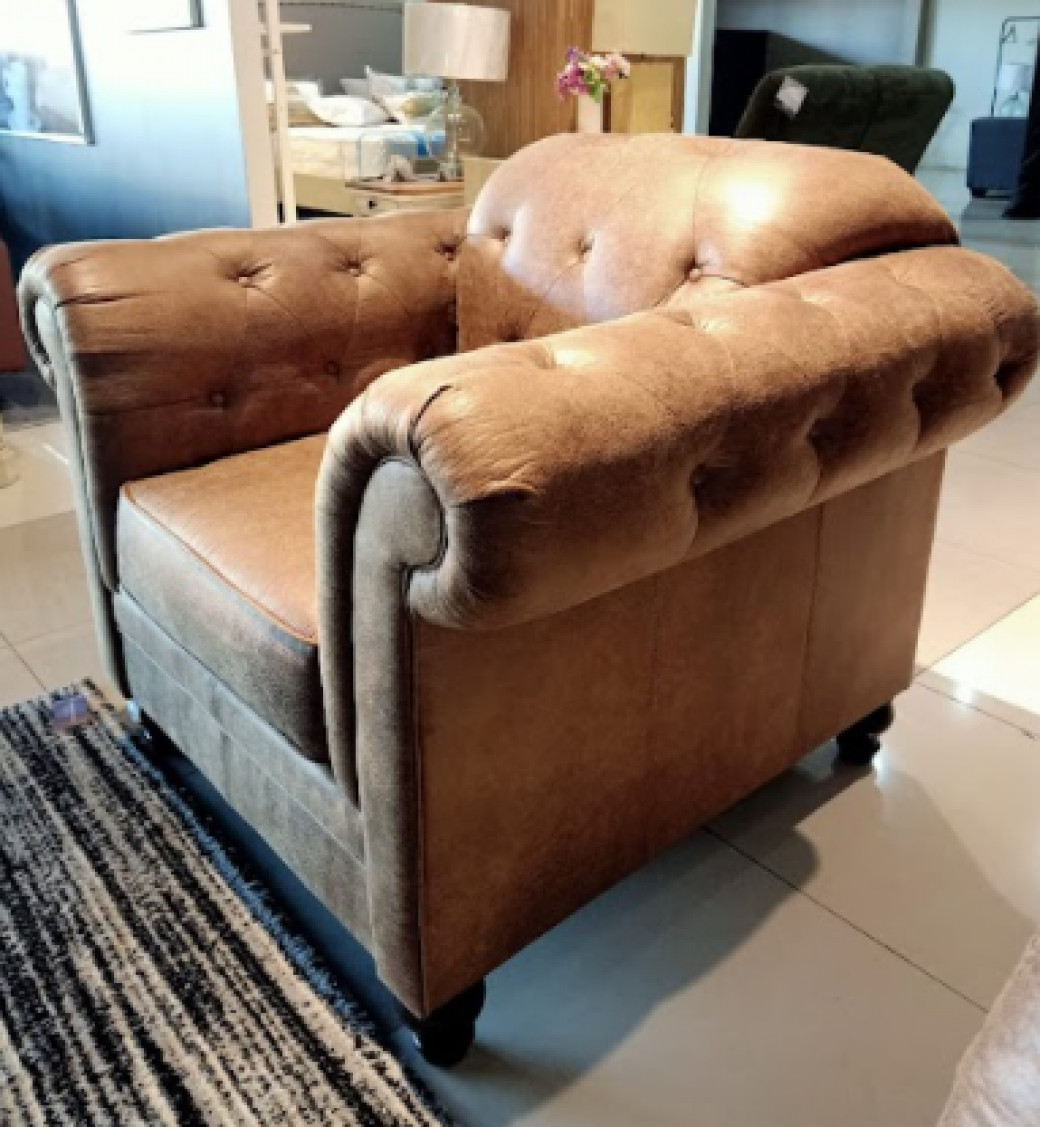 ໂຊຟາໜັງ 1 ບ່ອນນັ່ງ, ຂະໜາດ: 1117.6mm W x 990.6mm D x 939.8mm H ເນລະມິດພື້ນທີ່ພັກຜ່ອນຂອງທ່ານໃຫ້ສວຍງາມແລະໂດດເດັ່ນ ດ້ວຍຊຸດໂຊຟາໜັງສຸດຫຼູຫຼາ ສະໄຕລ໌ Vintage ທີ່ມາໃນຊີຣີ່ Larkinhurst ໃນ 1 ເຊັດປະກອບມີ ໂຊຟາ 3 ບ່ອນນັ່ງ, ໂຊຟາ 2 ບ່ອນນັ່ງ ແລະ ໂຊຟາຣີໄຄເນີ 1 ບ່ອນນັ່ງໃນເຊັດພ້ອມຕົກແຕ່ງໃຫ້ສວຍງາມຕາມແບບທີ່ທ່ານມັກ