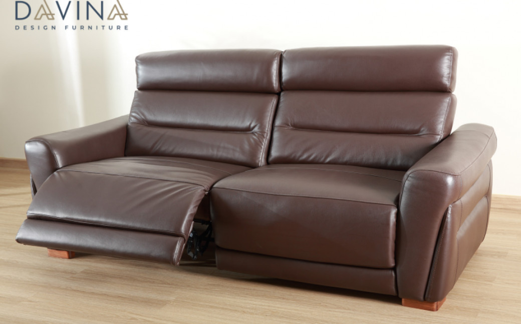 ໂຊຟາປັບລະດັບ ຫຼື Recliner Sofa ເຮັດດ້ວຍໜັງແທ້. ສາມາດປັບລະດັບໄດ້ທັງສອງບ່ອນນັ່ງ. ປັບແອນ ແລະ ປັບລະດັບບ່ອນວາງຂາດ້ວຍລະບົບໄຟຟ້າ. ນັ່ງສະບາຍ. ນັ່ງນຸ້ມ. ຟີນສຸດໆ ກັບການພັກກຜ່ອນ.