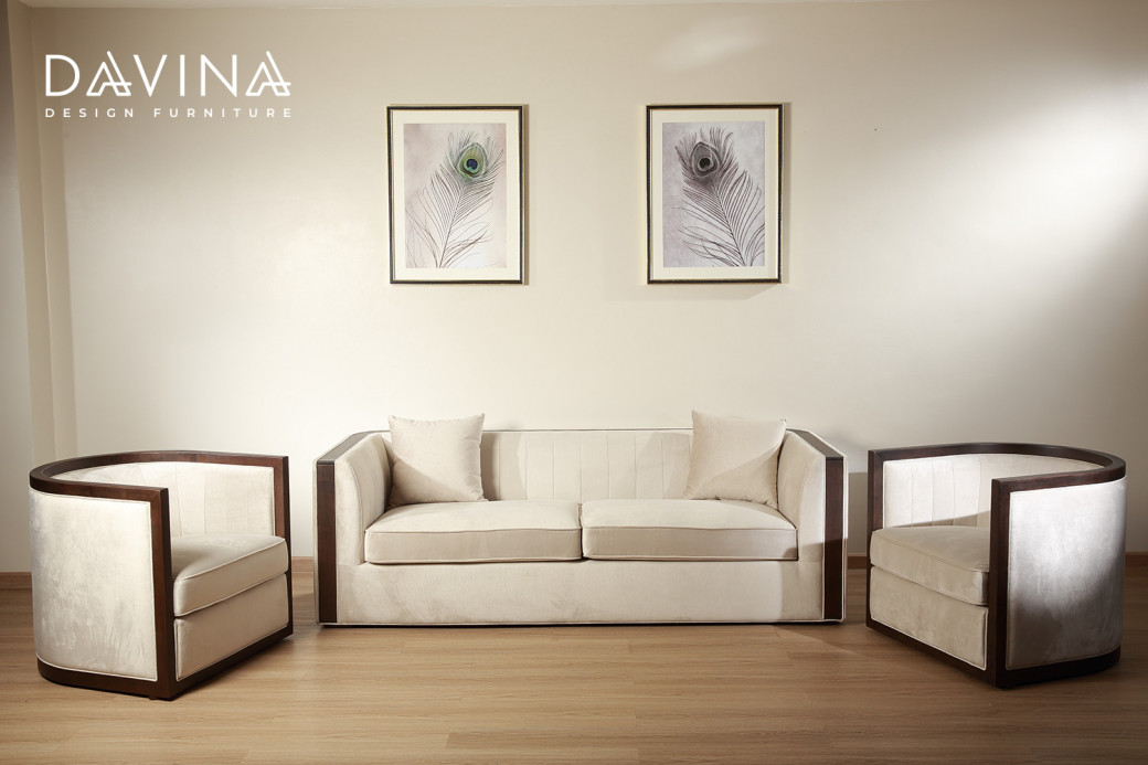 ໂຊຟາຊຸດນີ້ ມີດີຊາຍທີ່ໂດດເດັ່ນປະສົມປະສານລະຫວ່າງຄວາມໂດດເດັ່ນຂອງໄມ້ ແລະ ຜ້າ. ເປັນຜ້າສີເທົາກໍາມະຍີ່. ໂຄງສ້າງເປັນໄມ້ແຂງແຮງ.
