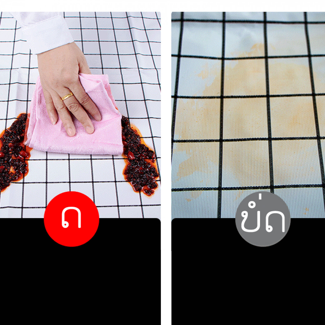 ຜ້າປູໂຕະ ກັນນ້ຳ-ກັນນ້ຳມັນ ບໍ່ເຮັດໃຫ້ເປັນຮອຍຄາບເປື້ອນ ເຊັດລ້າງສະບາຍ ງ່າຍຕໍ່ການທຳຄວາມສະອາດ