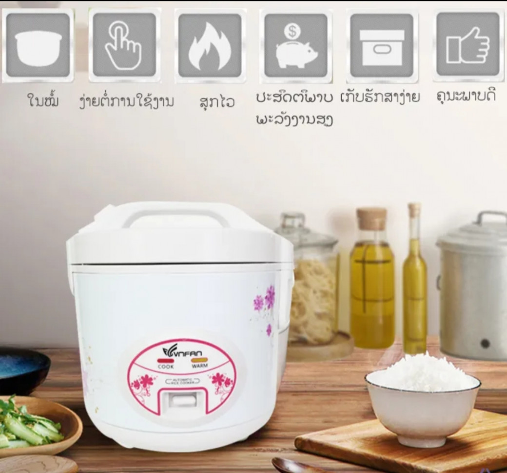 4.ເຄື່ອງແຖມ: ໝໍ້ຫູງເຂົ້າ,ຈອງຕັກເຂົ້າ,ຊັ້ນໜຶ້ງເຂົ້າ,ຈອກຕັກເຂົ້າ,ປື້ມຄູ່ມື