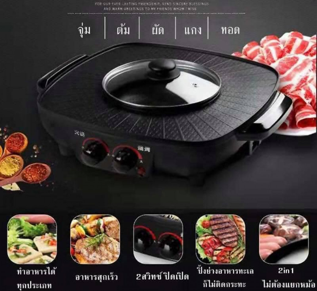 ຫມໍ້ກະທະປີ້ງຢ້າງຊາບູ ດາດບໍ່ຕິດຫມໍ້ ບໍ່ໃຊ້ນ້ຳມັນ