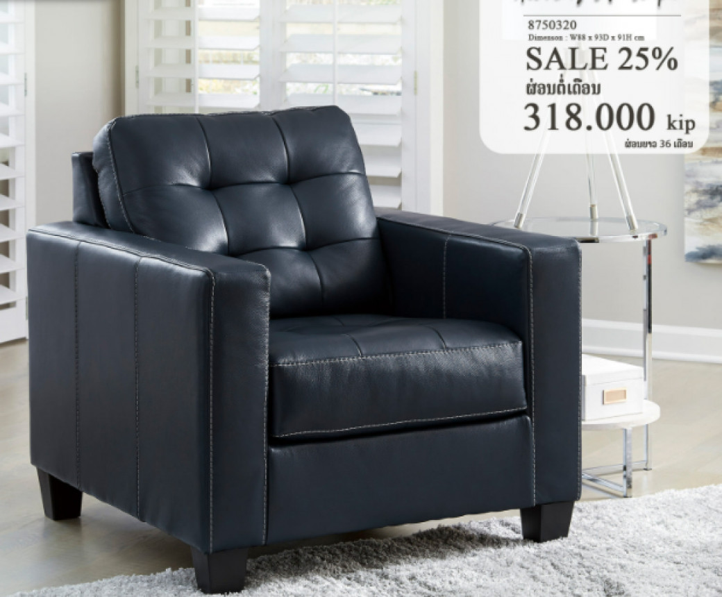 ຕົກແຕ່ງມຸມພັກຜ່ອນໃນບ້ານຂອງທ່ານ ດ້ວຍໂຊຟາ ໜັງສະໄຕລ໌ Modern ທີ່ອອກແບບມາຢ່າງຮຽບງ່າຍເນັ້ນການໃຊ້ງານ ໂດດເດັ່ນດ້ວຍ ການຍິບຕົກແຕ່ງກະດຸມເບາະແບບກ່ອງເຮັດໃຫ້ມີຄວາມຮຽບຮ້ອຍຂື້ນ ສຳຜັດກັບໜັງແທ້ບໍລິເວນນັ່ງທີ່ໃຫ້ຄວາມຮູ້ສືກຫຼູຫຼາແລະພຣີມຽມ ພ້ອມໃຫ້ທ່ານໄດ້ພັກຜ່ອນຢ່າງເຕັມທີ່.