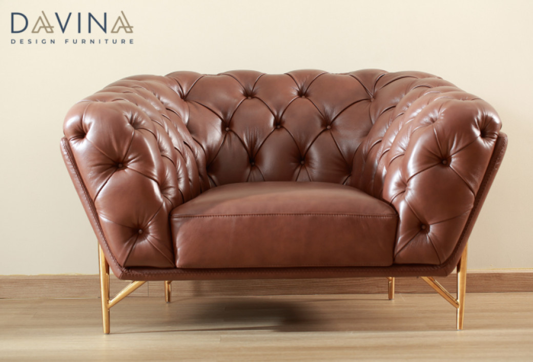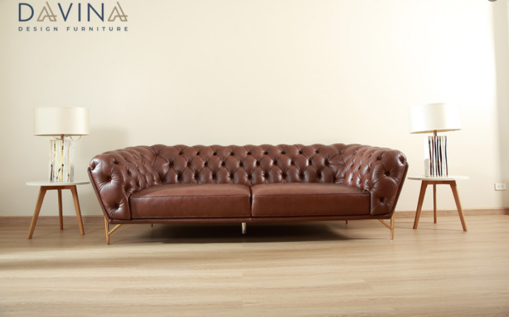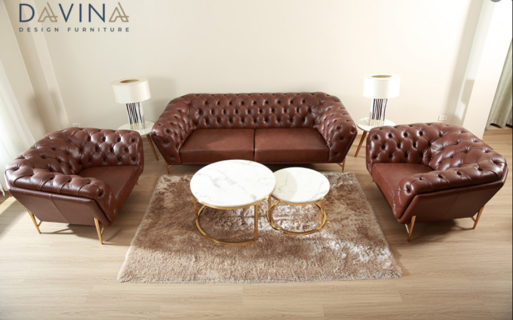 ໂຊຟາເຊັດນີ້ ເຮັດດ້ວຍໜັງແທ້. ສະຕາຍ໌ modern classic ຫຼື ສະຕາຍ໌ແບບລຽບຫຼູ. ໂຕໂຊຟາເປັນສີນໍ້າຕານເຂັ້ມ ເບີ່ງບໍ່ມີເບື່ອ. ຂາເປັນສີທອງ ຍົກລະດັບໂຊຟາໃຫ້ເບີ່ງຫຼຸຫຼາຂື້ນຕື່ມ.