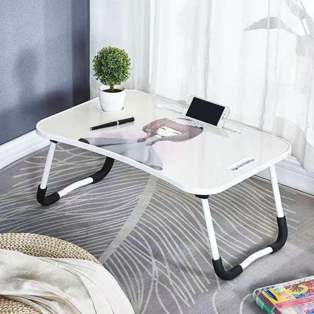 ໂຕະພັບໄດ້ລາຍກາຕູນ ງາມ ນ່າຮັກ ນັ່ງເຮັດວຽກສະບາຍ ມີບ່ອນຕັ້ງນໍ້າ ແລະ ບ່ອນວາງ ipad