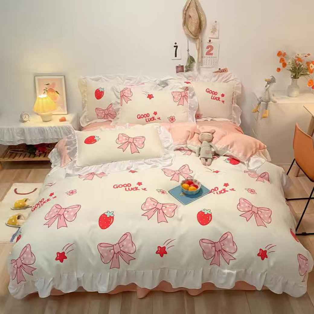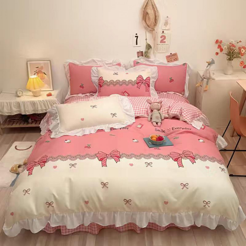ຜ້າປູບ່ອນ ລາຍໂບ ນ່າຮັກ ສີສັນສົດໃສ ຫວານໆ