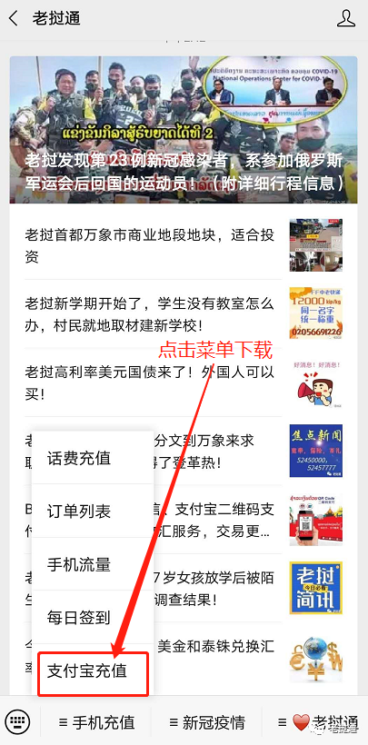 赶快扫码上面二维码或直接进入老挝通页面左下手机充值菜单最下面一项点击安装。